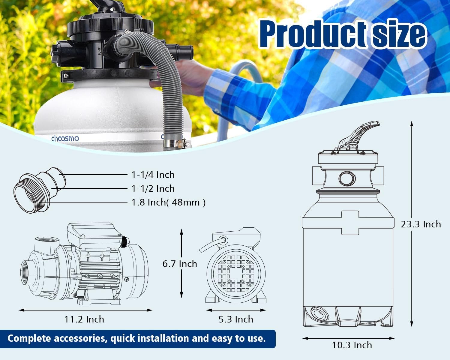 10″ Sand Filter System for Above Ground Pools with Six Way Valve and 2220GPH Pool Pump Easy to Use for Water Circulation