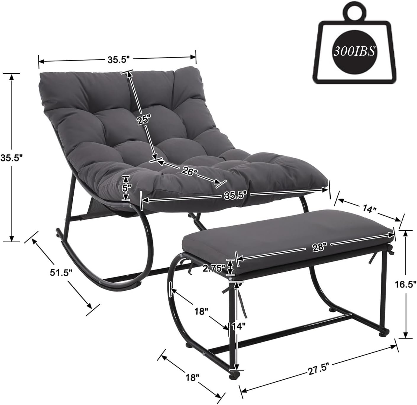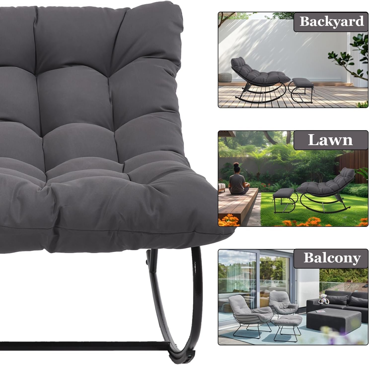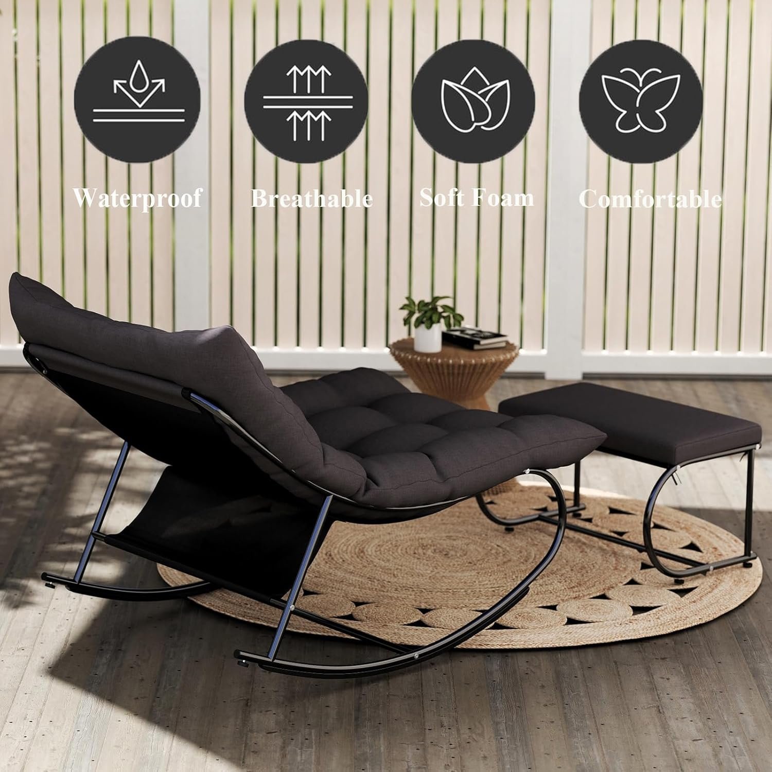 Multi-functional Application: Rocking chair and footrest combination design, can enjoy the soothing of rocking, but also through the footrest to add more comfort, to meet different needs; help to stay away from the tension and worries of daily life; not only suitable for outdoor use, but can be placed in the office, living room, bedroom and other scenes