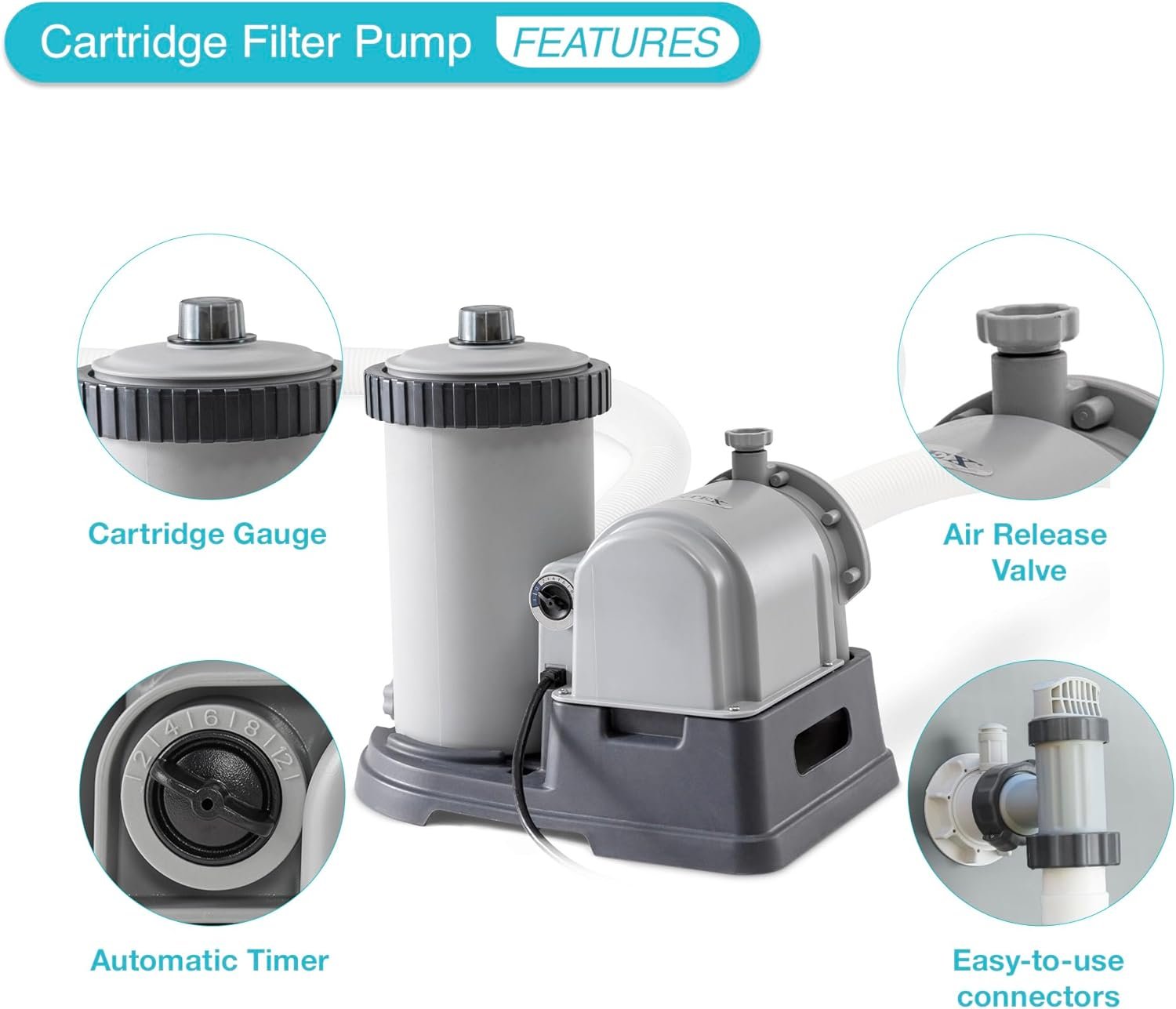 Intex C2500 Krystal Clear Cartridge Filter Pump for Above Ground Pools: 2500 GPH Pump Flow Rate – Improved Circulation and Filtration – Easy Installation – Improved Water Clarity – Easy-to-Clean